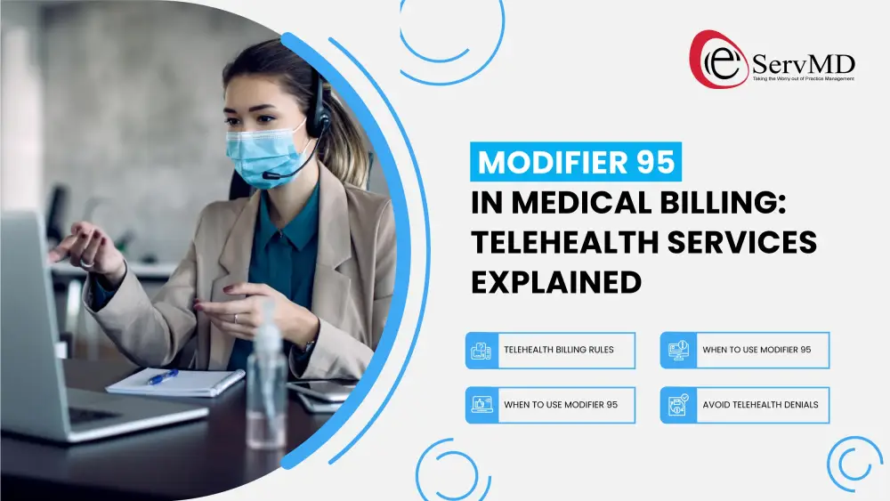 Telehealth has completely transformed how healthcare is delivered and billed. After working with multiple practices that rapidly adopted virtual care post pandemic, one thing became clear: Modifier 95 in medical billing is still widely misunderstood. Even experienced providers face denials simply because of incorrect modifier and POS pairing. At eservmd, our expertise in Telehealth billing services Florida helps healthcare providers avoid these common errors, reduce claim denials, and ensure accurate reimbursement for virtual care.